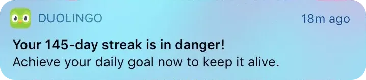 The bigger a streak becomes, the greater we want to avoid losing it. Each time it ticks up by one, that’s one extra day needed to achieve it again if it resets. This feeling can be attributed to loss aversion, which is a cognitive bias where you feel the pain of loss twice as intensively than the equivalent pleasure of gain