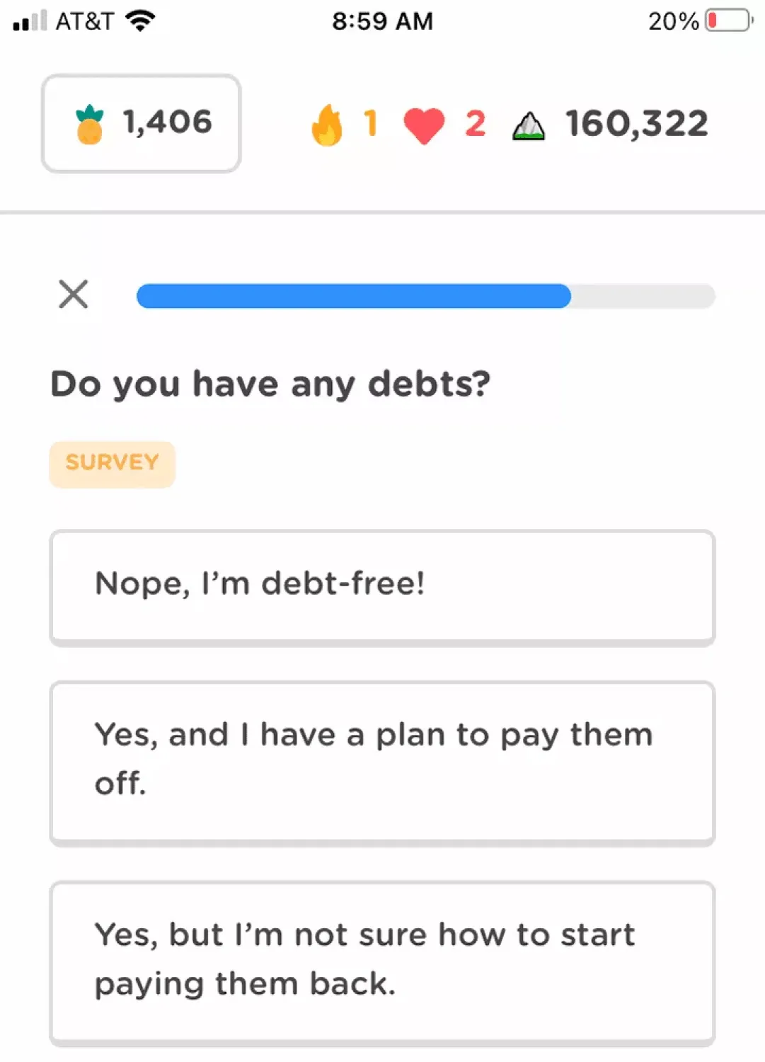 Alternatively, you could decouple the tangible rewards and the streak. This is the path the financial literacy app Zogo took. Every time a module is successfully completed, the user earns points (called “pineapples”). Once enough pineapples are earned, they can be redeemed for gift cards. So in the end, keeping the streak can lead to a reward, but the reward isn’t really dependent on the streak itself. Even if the streak is broken, pineapples earned remain in users’ stores, waiting to be redeemed.