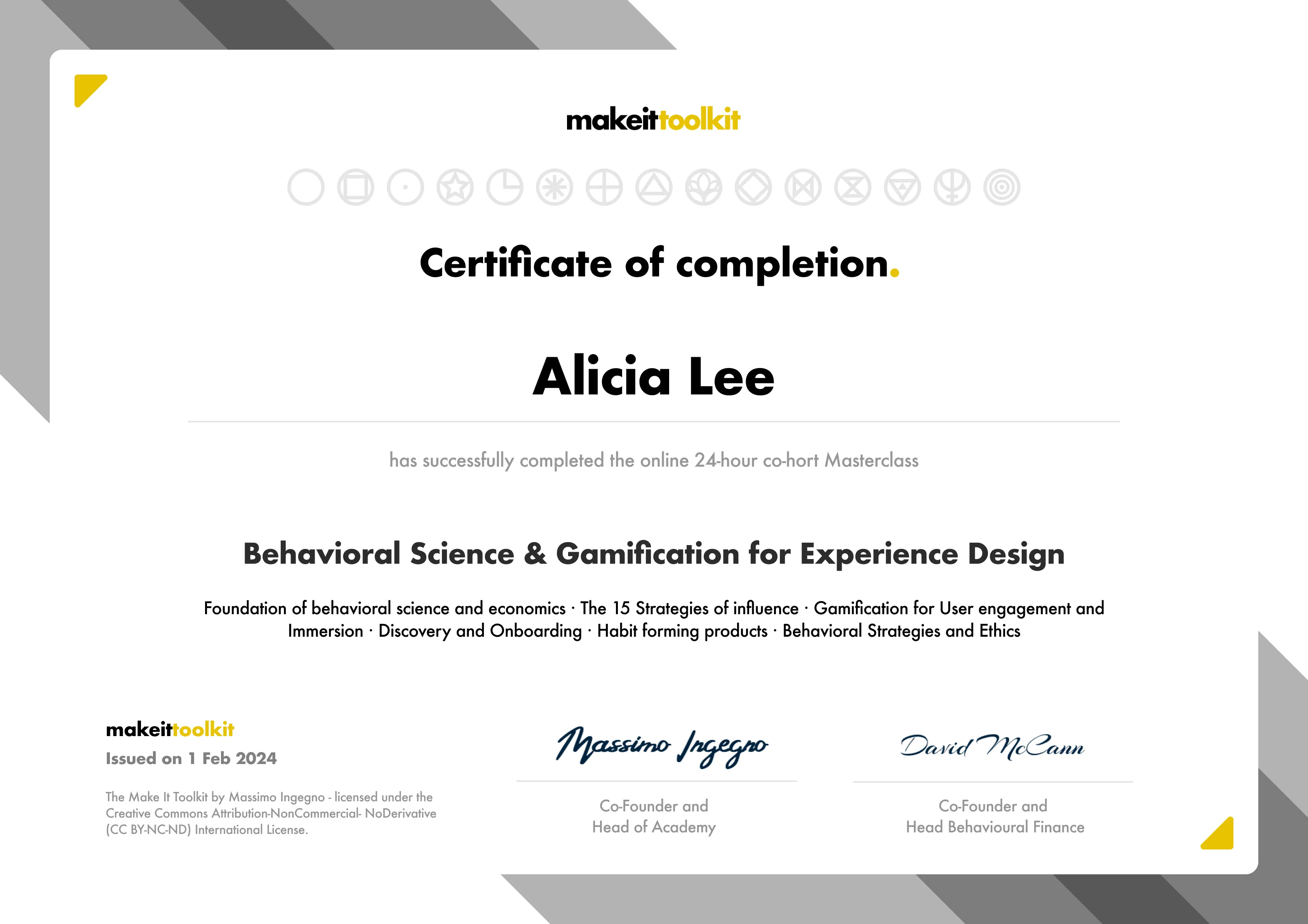 The Make it Masterclass is a 24-hour interactive learning program thought by leading educators and practitioners. It provides unique insights into the 5-step Behavioral Design & Gamification process and method to design more usable, persuasive and engaging digital experiences to change behavior and drive business growth, ethically.