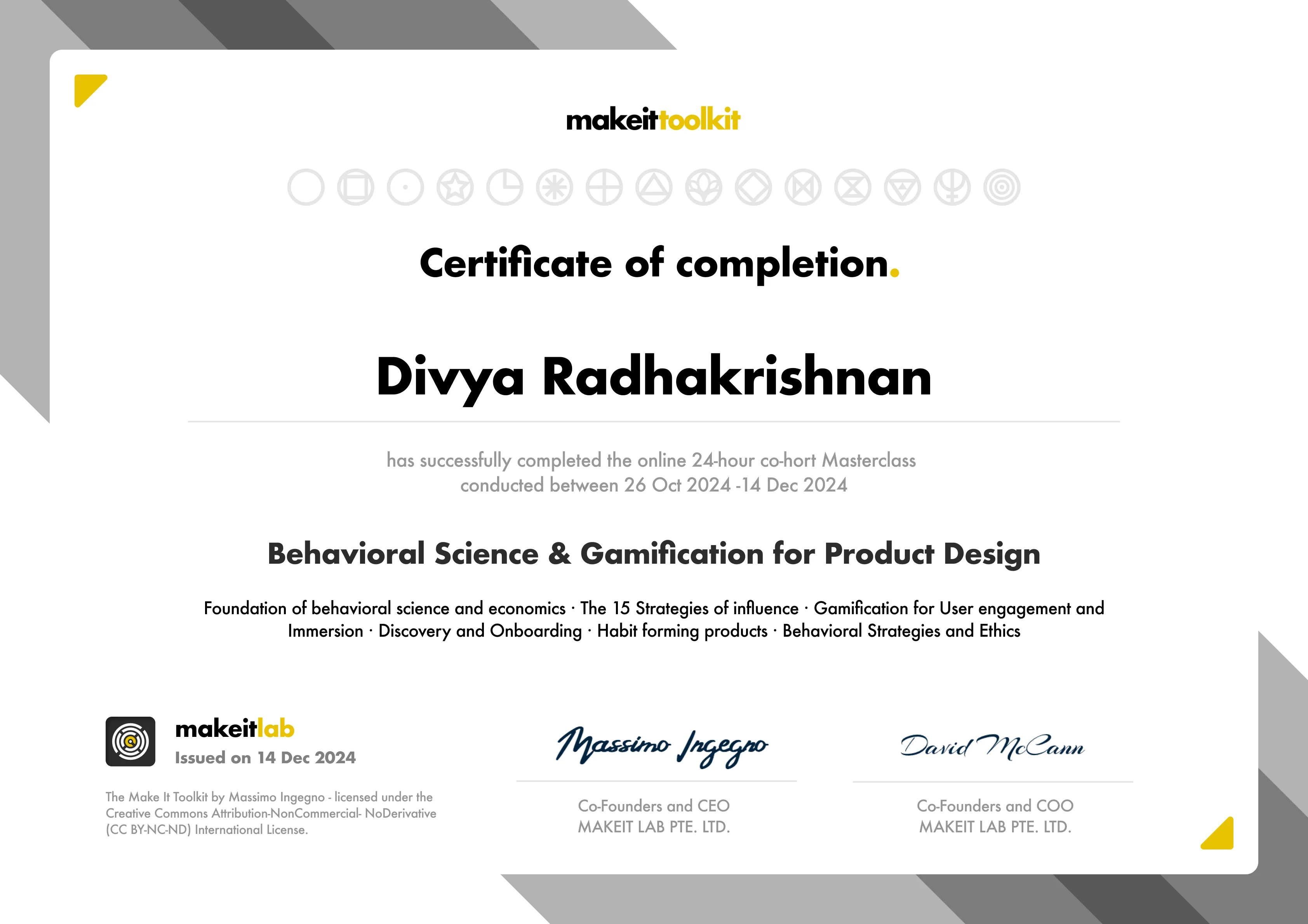 The Make it Masterclass is a 24-hour interactive learning program thought by leading educators and practitioners. It provides unique insights into the 5-step Behavioral Design & Gamification process and method to design more usable, persuasive and engaging digital experiences to change behavior and drive business growth, ethically.