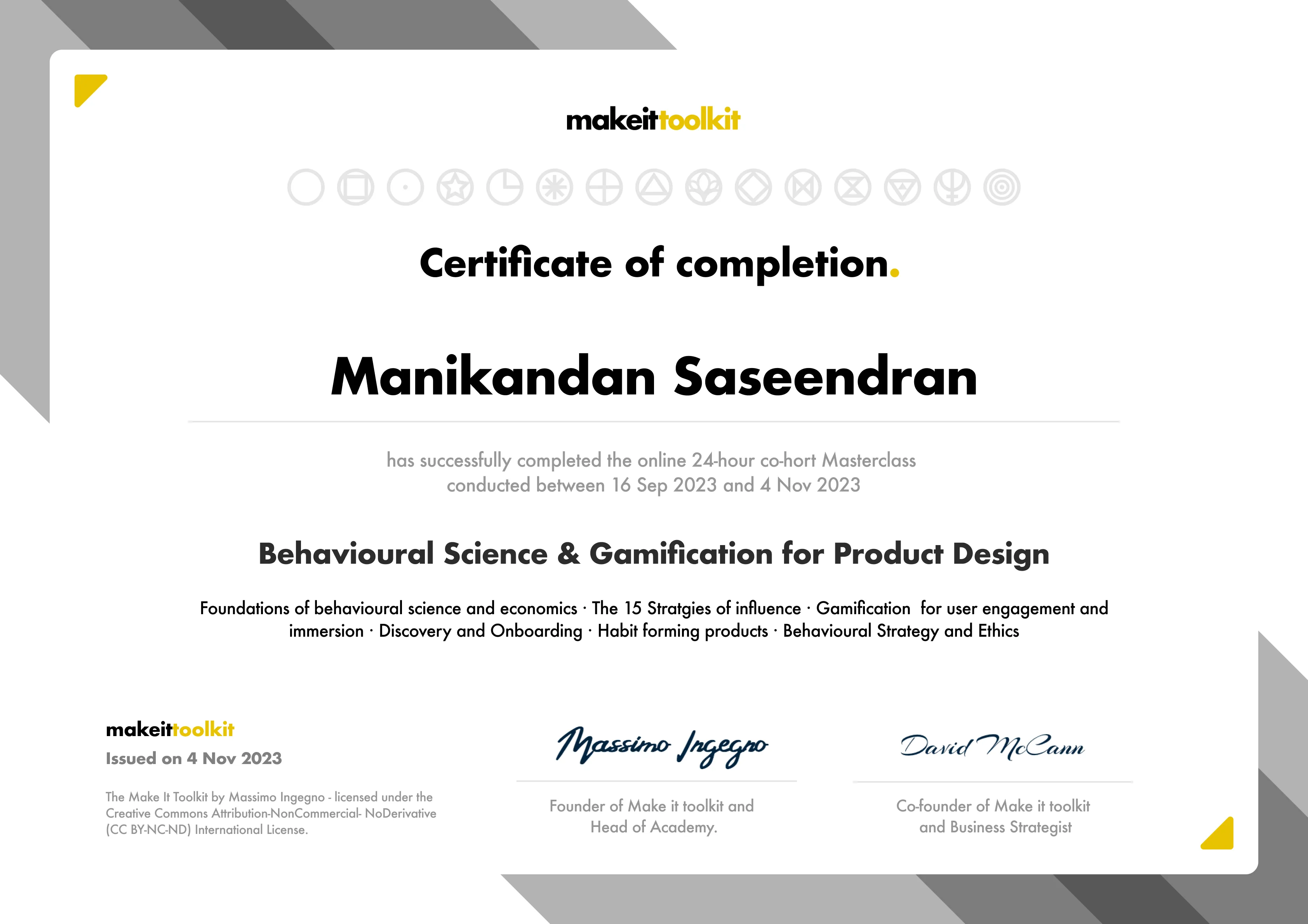 The Make it Masterclass is a 24-hour interactive learning program thought by leading educators and practitioners. It provides unique insights into the 5-step Behavioral Design & Gamification process and method to design more usable, persuasive and engaging digital experiences to change behavior and drive business growth, ethically.