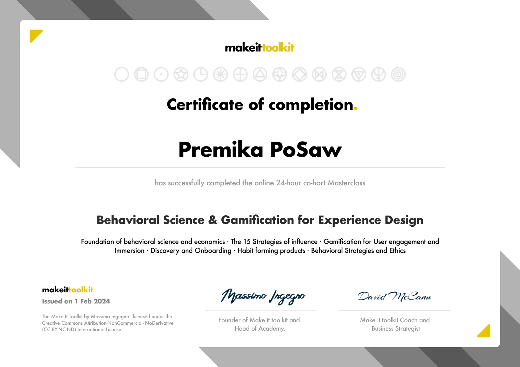 The Make it Masterclass is a 24-hour interactive learning program thought by leading educators and practitioners. It provides unique insights into the 5-step Behavioral Design & Gamification process and method to design more usable, persuasive and engaging digital experiences to change behavior and drive business growth, ethically.