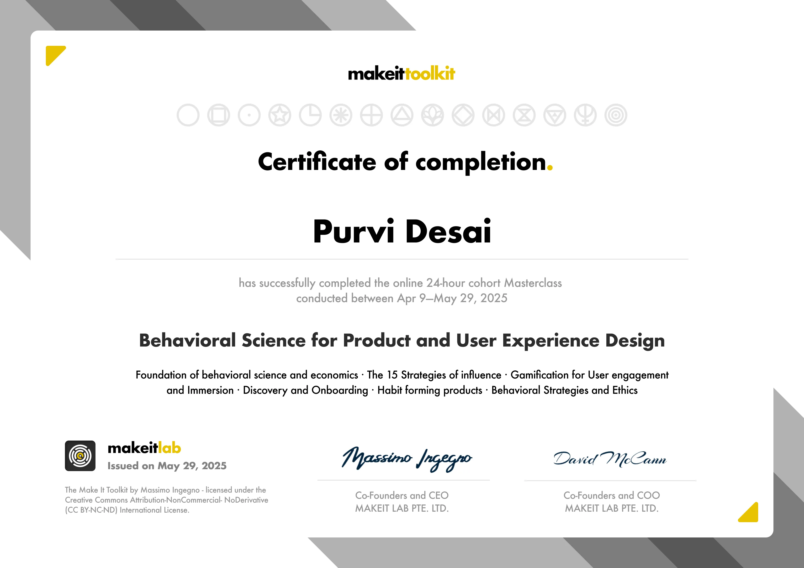 The Make it Masterclass is a 24-hour interactive learning program thought by leading educators and practitioners. It provides unique insights into the 5-step Behavioral Design & Gamification process and method to design more usable, persuasive and engaging digital experiences to change behavior and drive business growth, ethically.