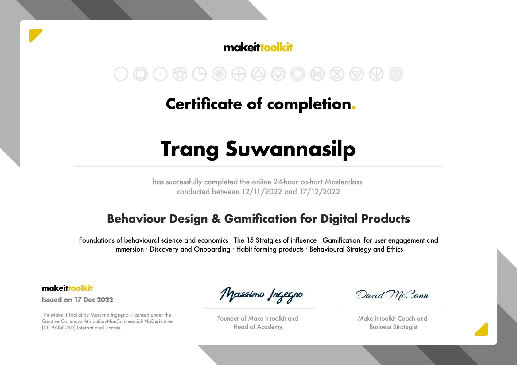 The Make it Masterclass is a 24-hour interactive learning program thought by leading educators and practitioners. It provides unique insights into the 5-step Behavioral Design & Gamification process and method to design more usable, persuasive and engaging digital experiences to change behavior and drive business growth, ethically.