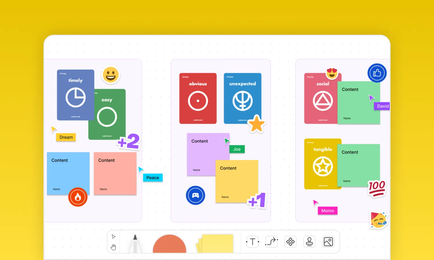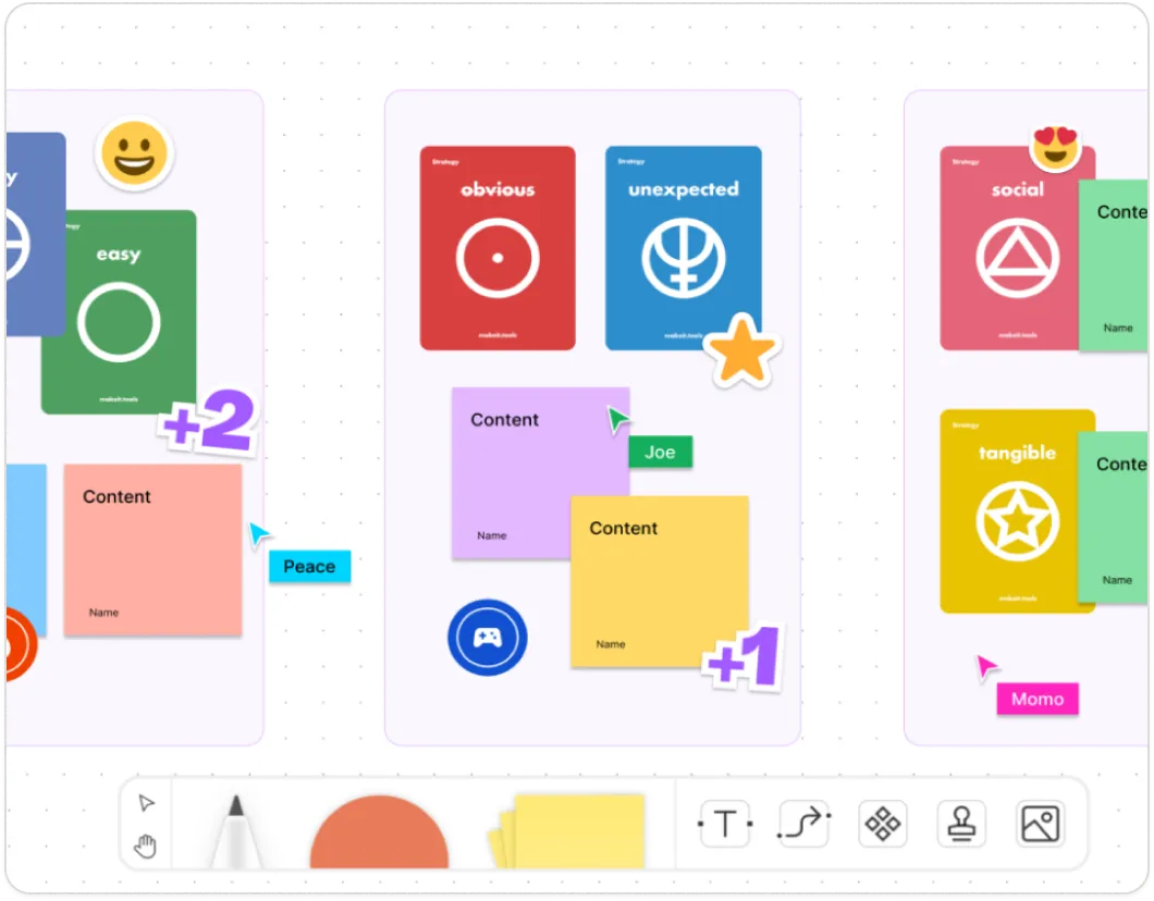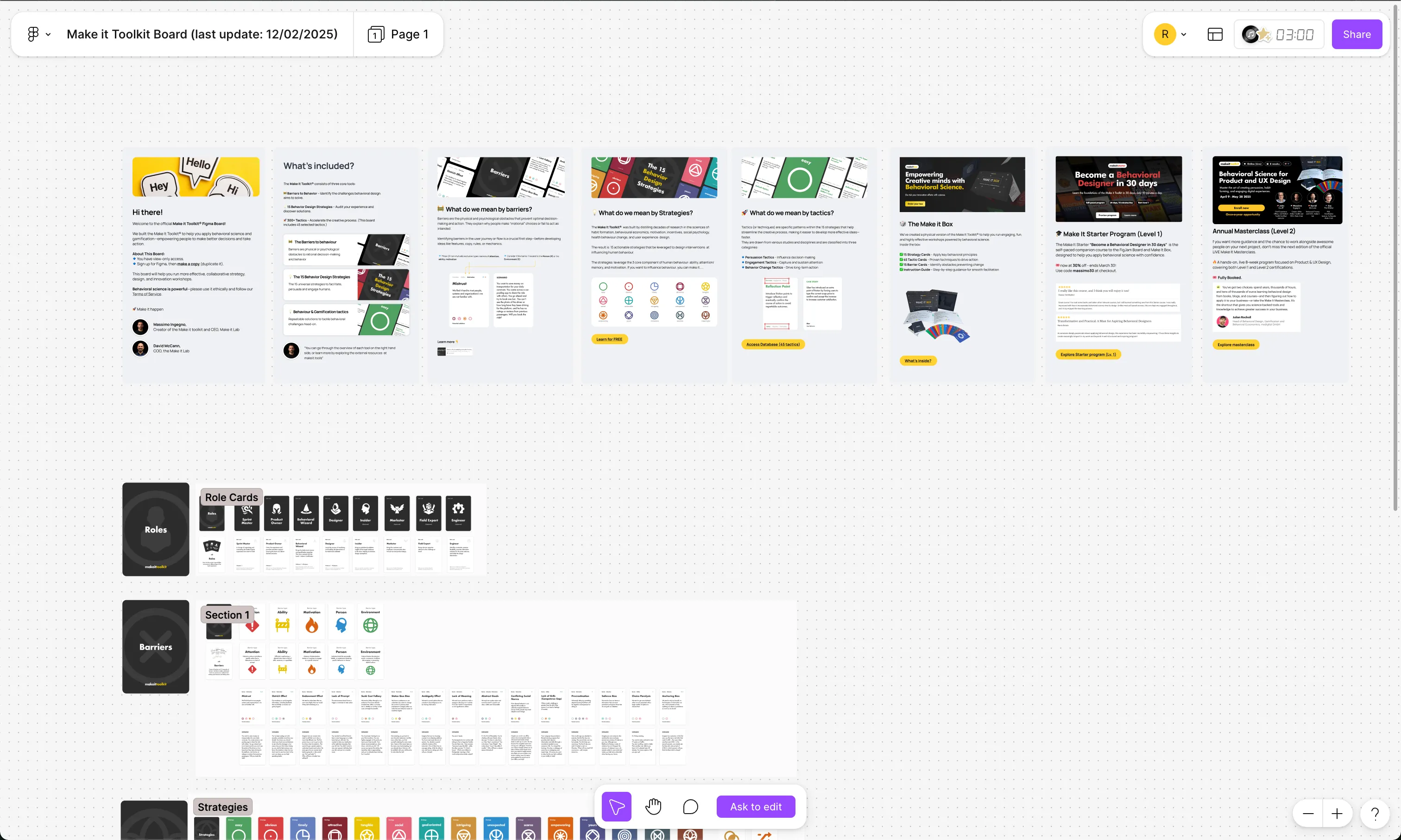 Digital whiteboard (Miro/FigJam) with the digital version of the Make it Box for remote collaboration